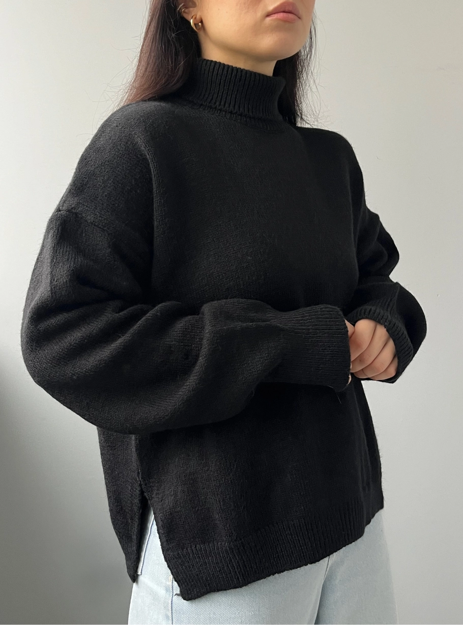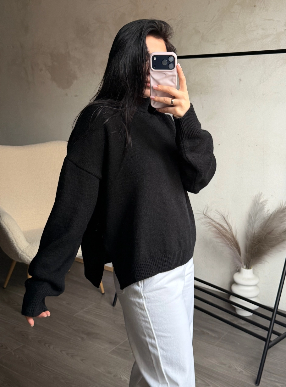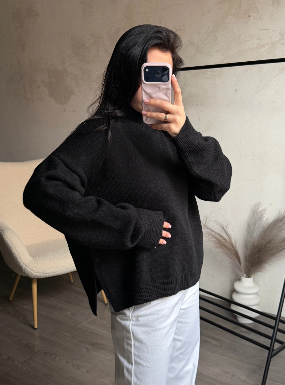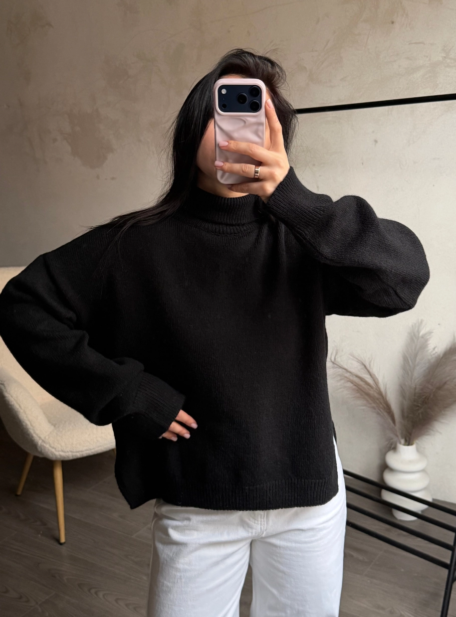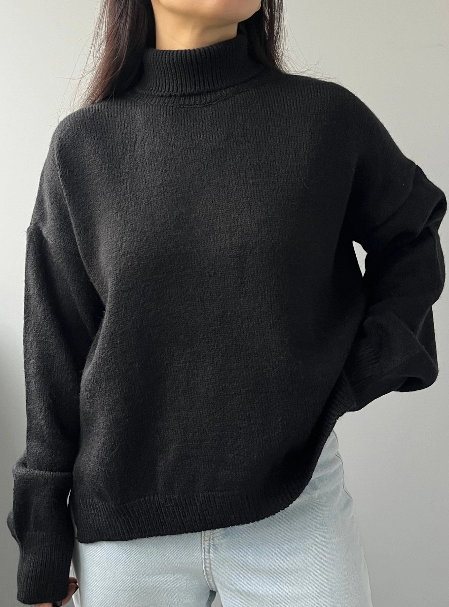 Теплий і стильний must-have для прохолодного сезону. М’яка в’язка приємно торкається шкіри, а висока горловина створює відчуття затишку й комфорту навіть у найпохмуріші дні. Светр має спущене плече, що додає образу невимушеності, і лаконічний дизайн — його легко поєднувати з джинсами, спідницями чи брюками.
