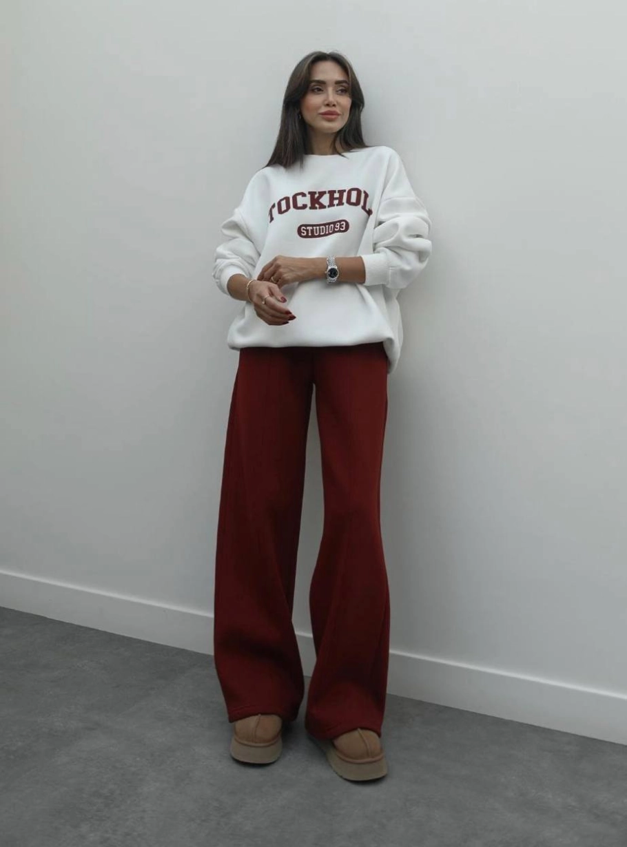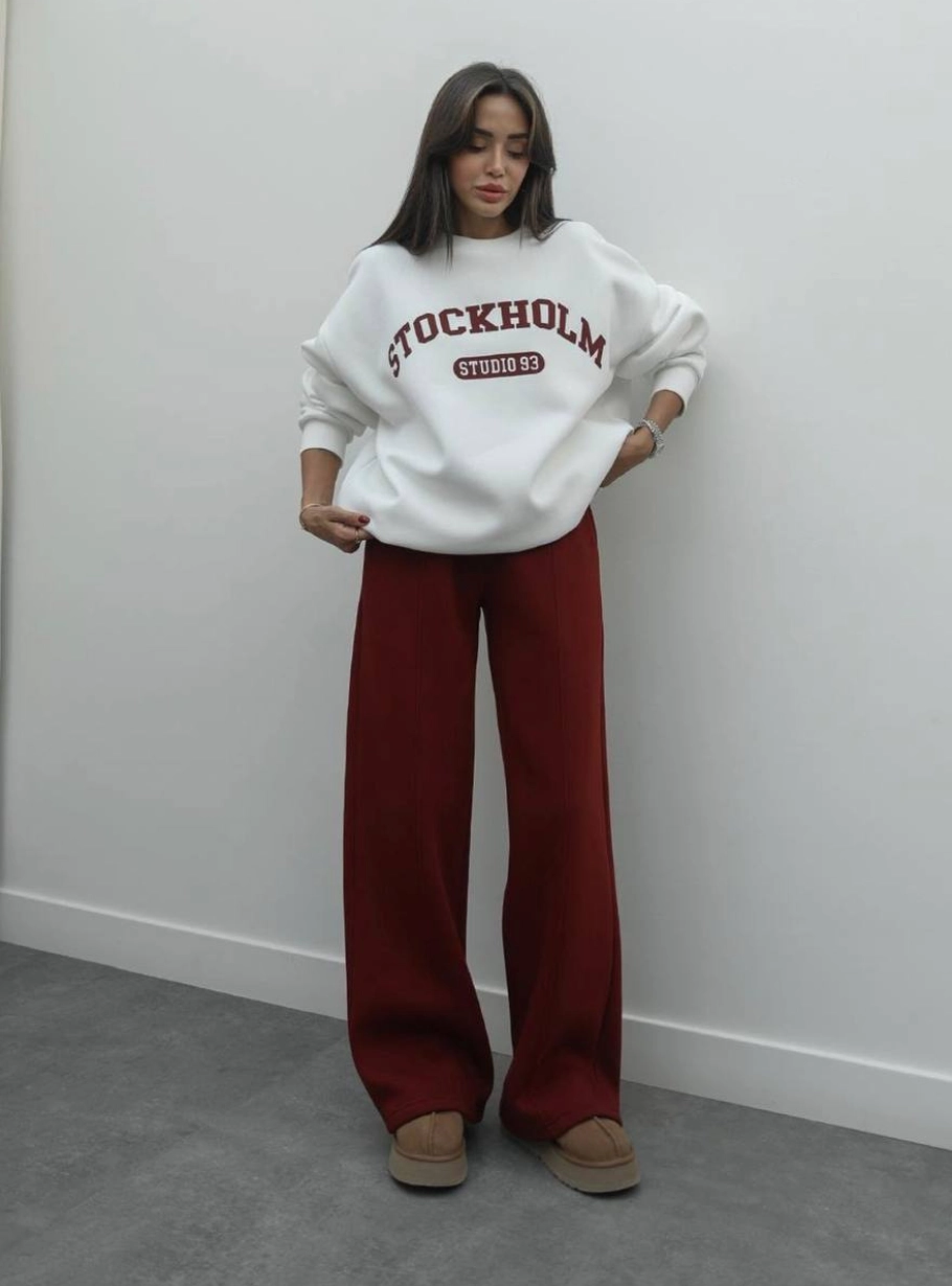 Об’ємний світшот створює розслаблений силует, а штани прямого крою додають образу сучасності й комфорту. Разом — це ідеальний варіант для щоденного стилю, подорожей чи прогулянок.