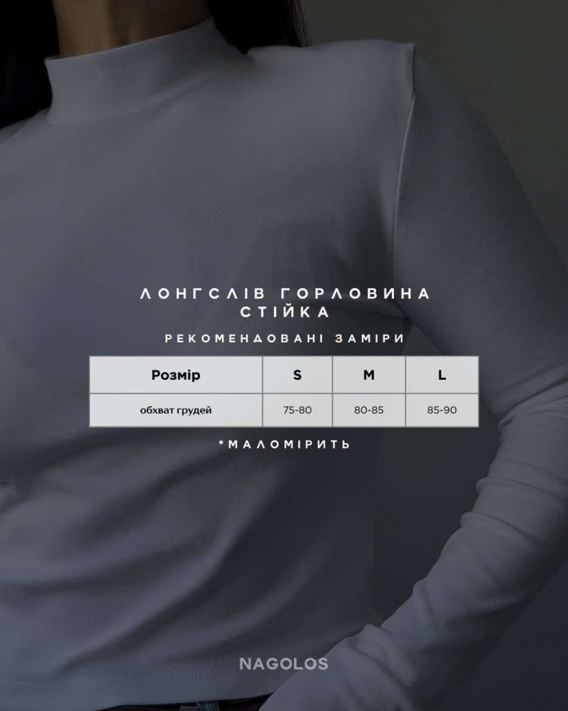 Горловина делікатно прилягає до шиї, додаючи образу структури й роблячи лонгслів більш “зібраним” — те, що треба для офісу, прогулянок або багатошарових аутфітів восени й взимку. Матеріал не просвічує, комфортно тягнеться та приємний до шкіри.