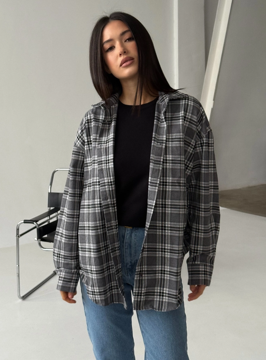 Сорочка в клітинку — світло сіра