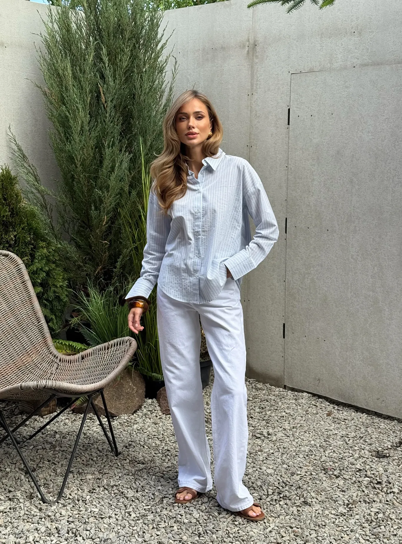 Легка, дихаюча й приємна до тіла — ця сорочка створена для тих, хто цінує лаконічний стиль і комфорт. Вільний крій дарує свободу рухів, а вертикальна смужка візуально подовжує силует. Ідеально поєднується з джинсами, шортами чи спідницями, створюючи як casual, так і більш стримані образи.
