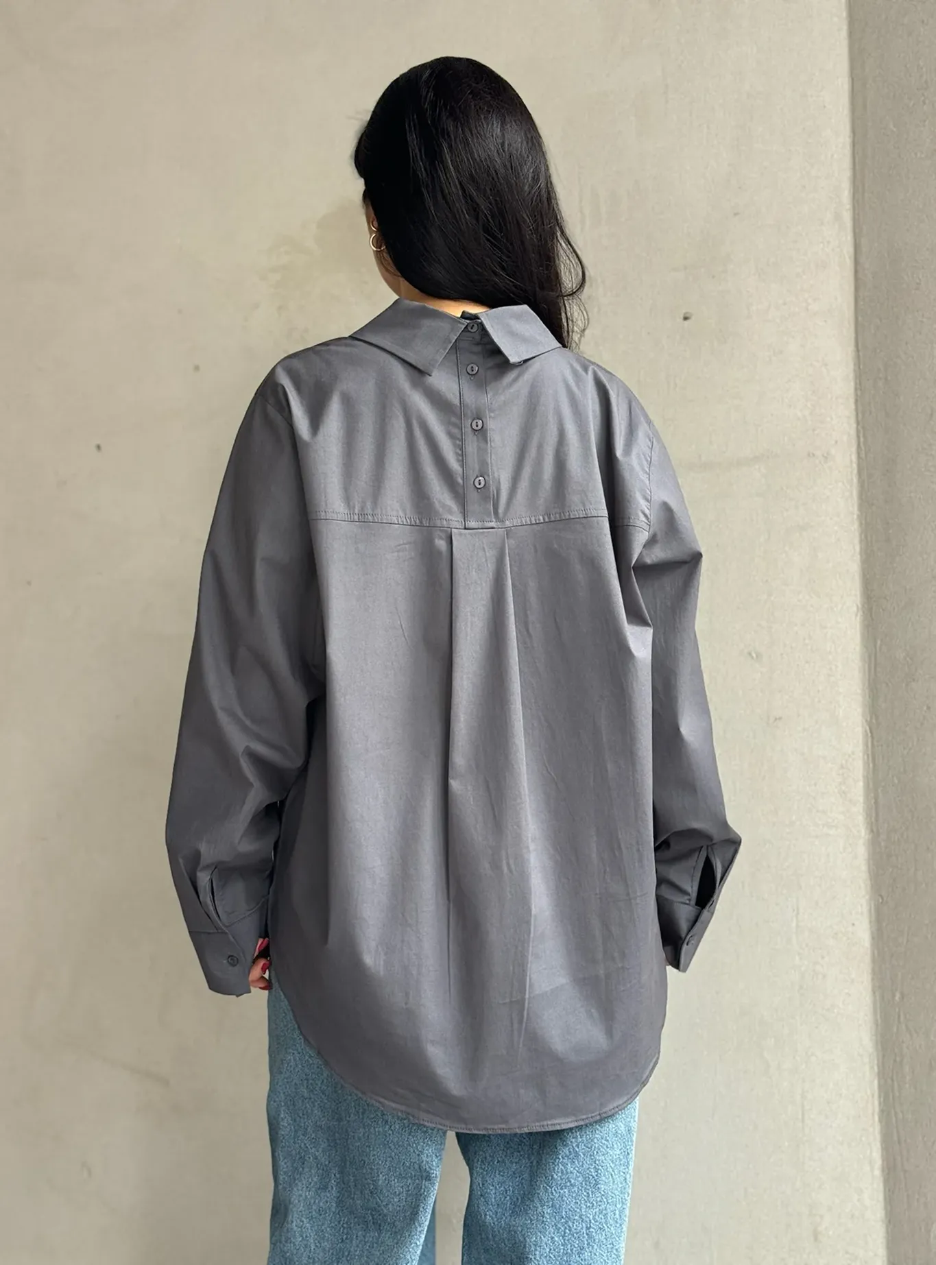 Ця сорочка вирізняється мінімалістичним дизайном спереду та виразною декоративною складкою ззаду, що додає їй сучасності й об’єму. Вільний крій створює комфорт і невимушений силует, який гарно поєднується і з джинсами, і з класичними брюками.
