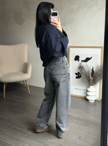 Джинси палацо чорні з декоротивною складкою