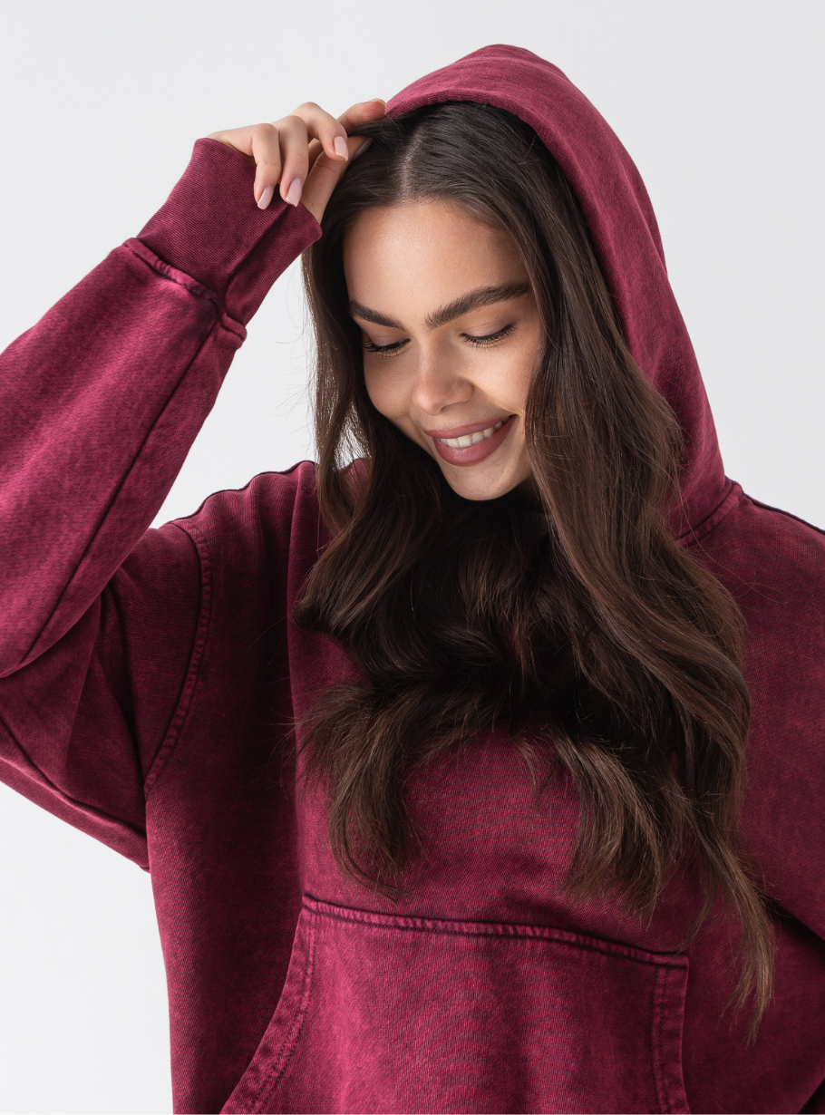 Особливості: м’який трикотаж, кишеня-кенгуру, капюшон, подвійні шви