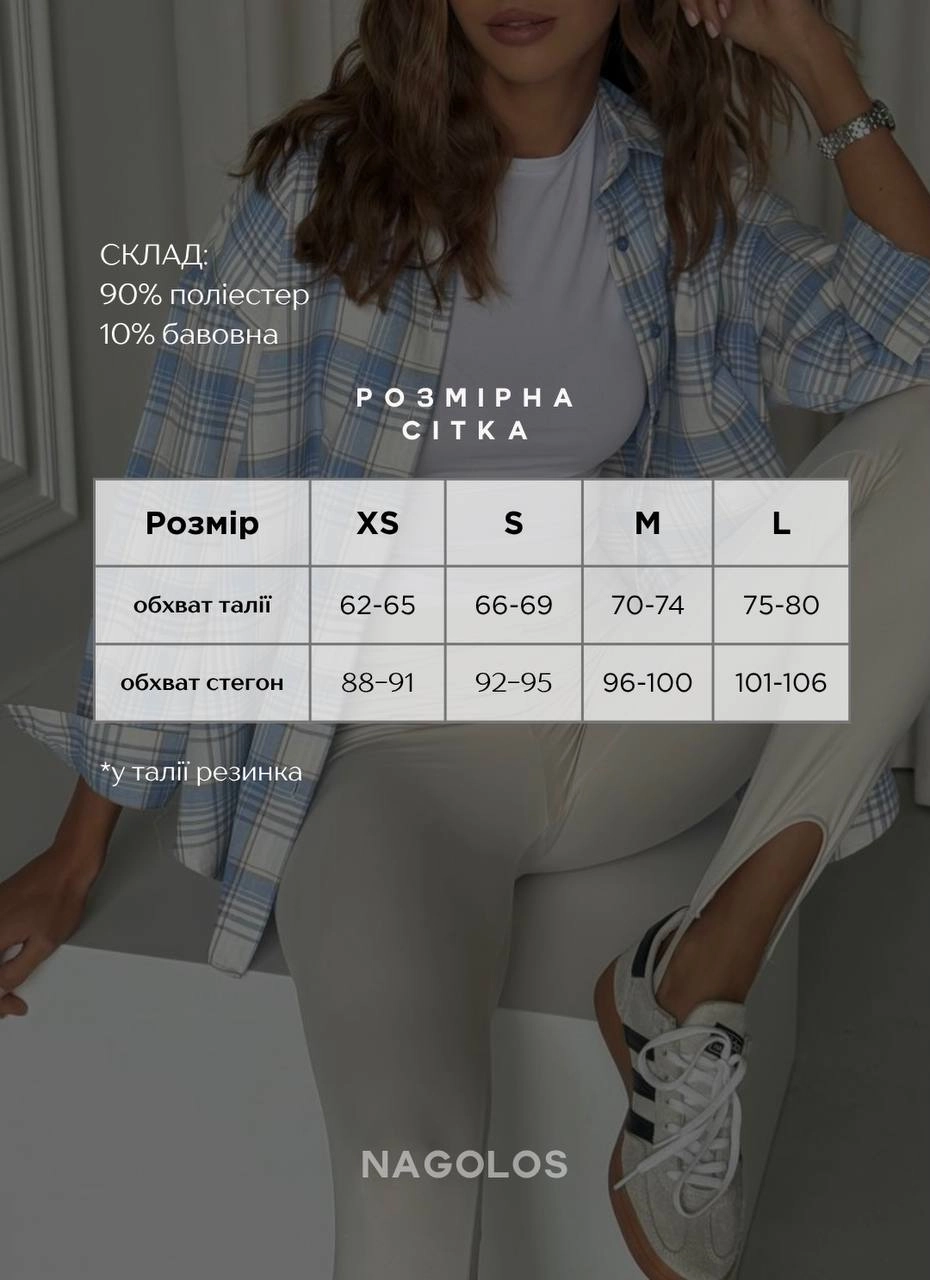 Комфорт і стиль в одному виробі. Ці лосини створені з еластичної тканини, що чудово тягнеться та підкреслює фігуру, забезпечуючи ідеальну посадку. Штрипки фіксують низ на нозі, додаючи образу трендової нотки та зручності у русі.