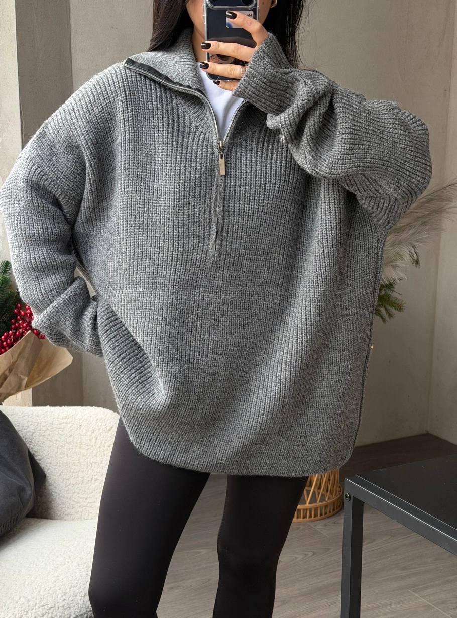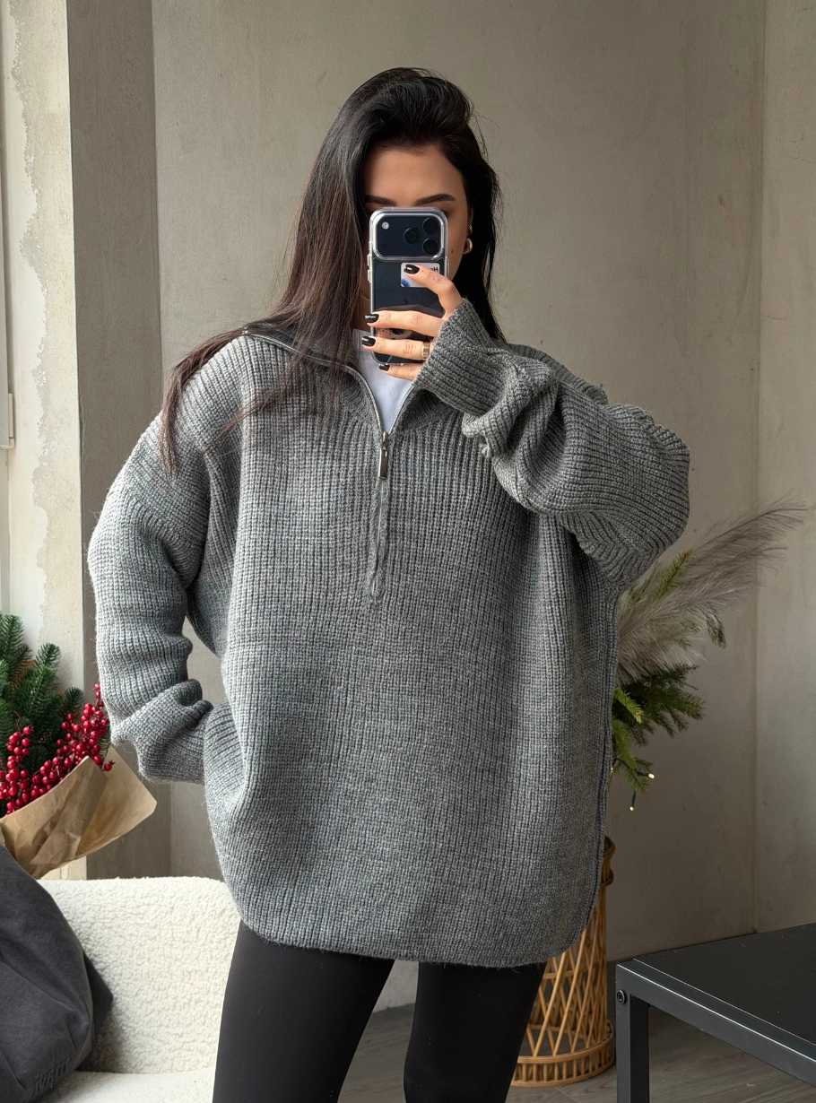 Універсальний і затишний — цей пуловер поєднує комфорт базового светра з лаконічною елегантністю. Щільна в’язка приємно гріє, а коротка блискавка дозволяє легко регулювати виріз — створюйте стриманий або більш розслаблений образ. Ідеальний для міських прогулянок, подорожей чи спокійних днів удома.