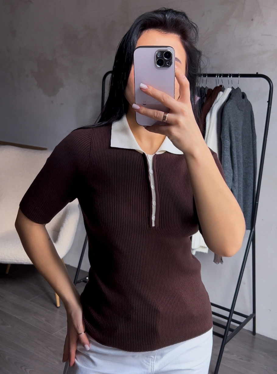 Це поло — втілення сучасної класики. М’яка тканина приємно лягає по фігурі, не обтягує, але красиво окреслює силует. Короткий рукав робить модель універсальною — під жакет, кардиган чи як самостійний елемент образу.