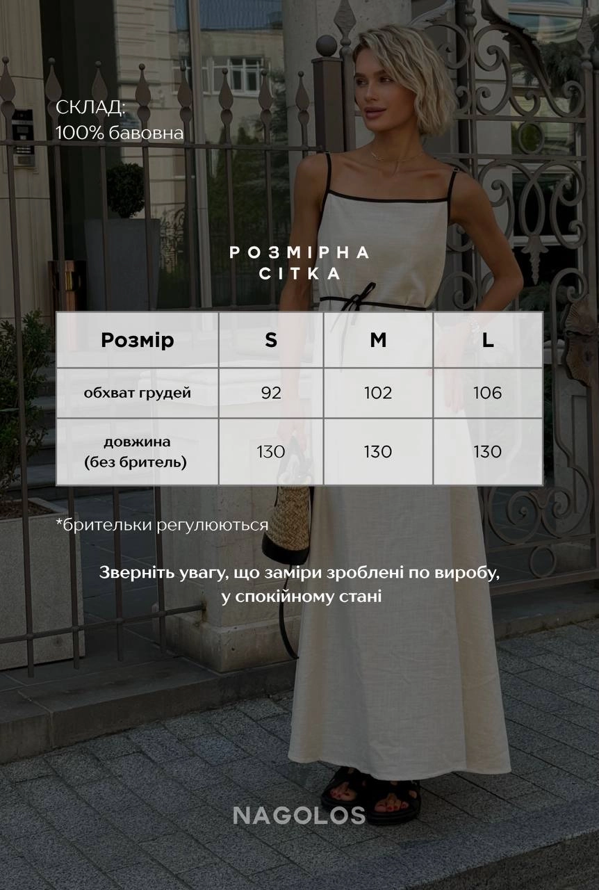 М’яка натуральна тканина дарує комфорт навіть у спеку, а лаконічний крій підкреслює природну жіночність.