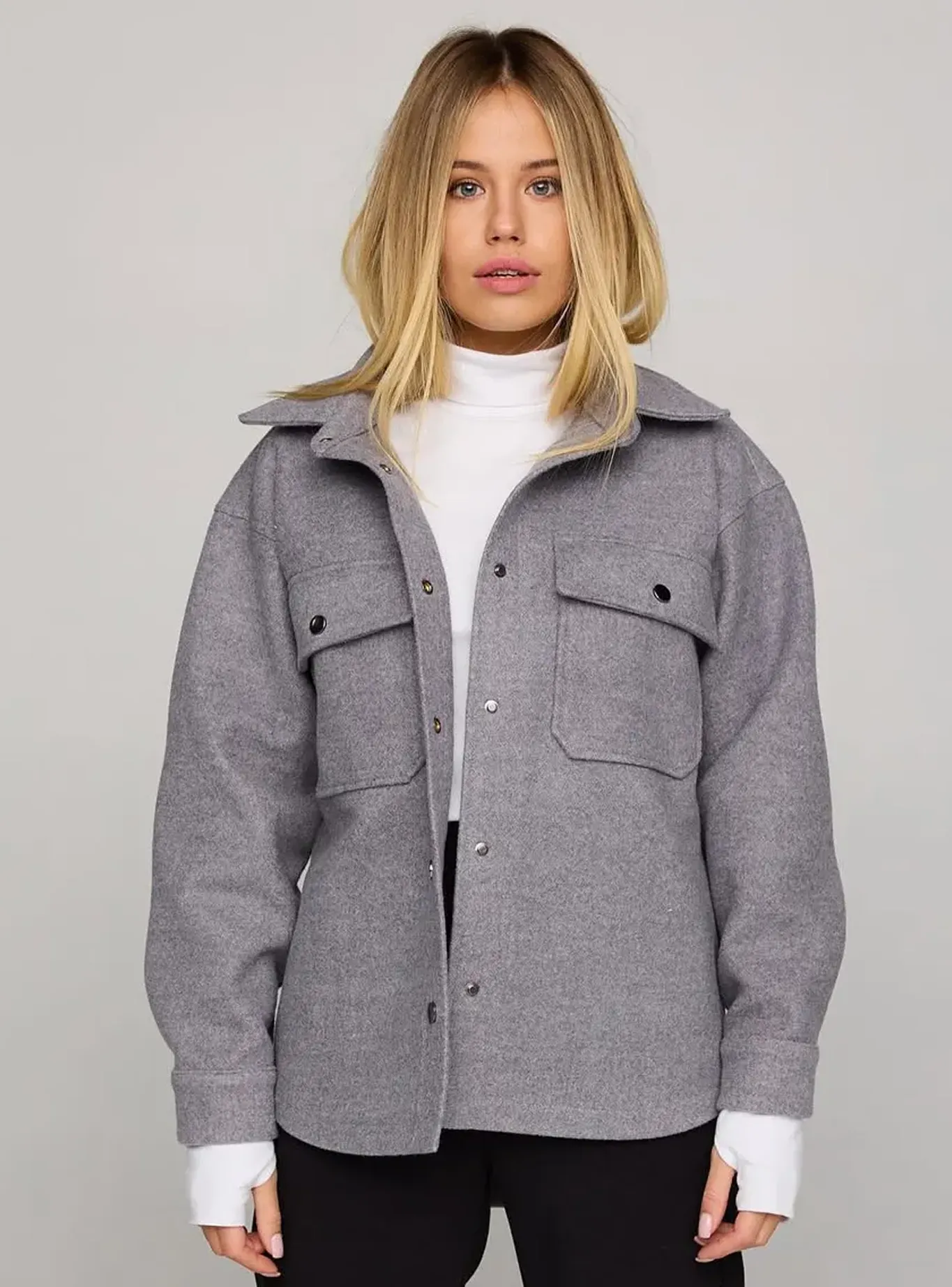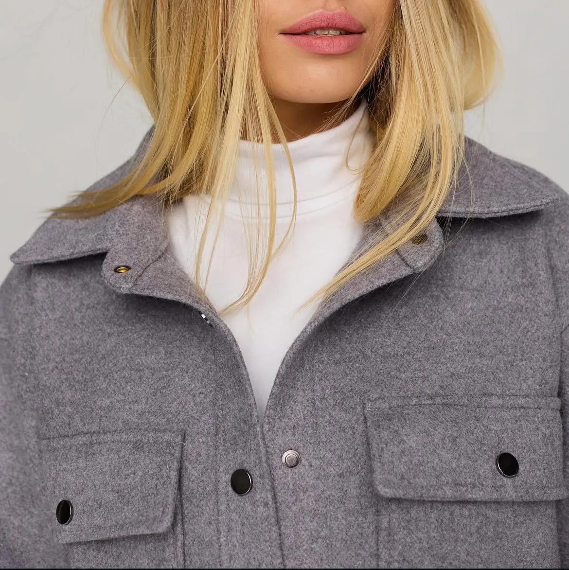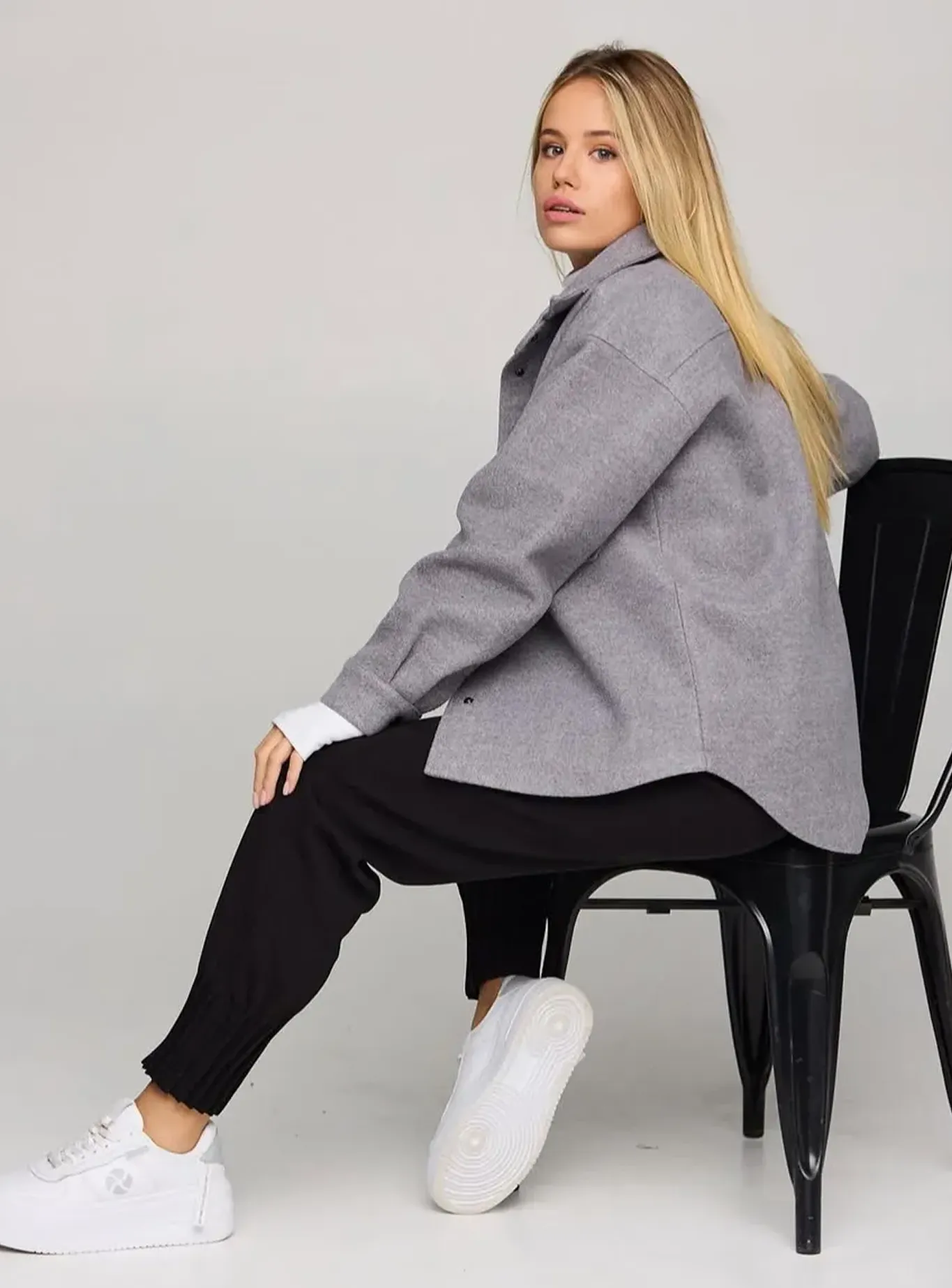 Модель має вільний силует, накладні кишені з клапанами й класичний комір, що додає структури образу. Завдяки застібці на кнопки сорочка легко поєднується з водолазкою, светром чи базовою футболкою.
