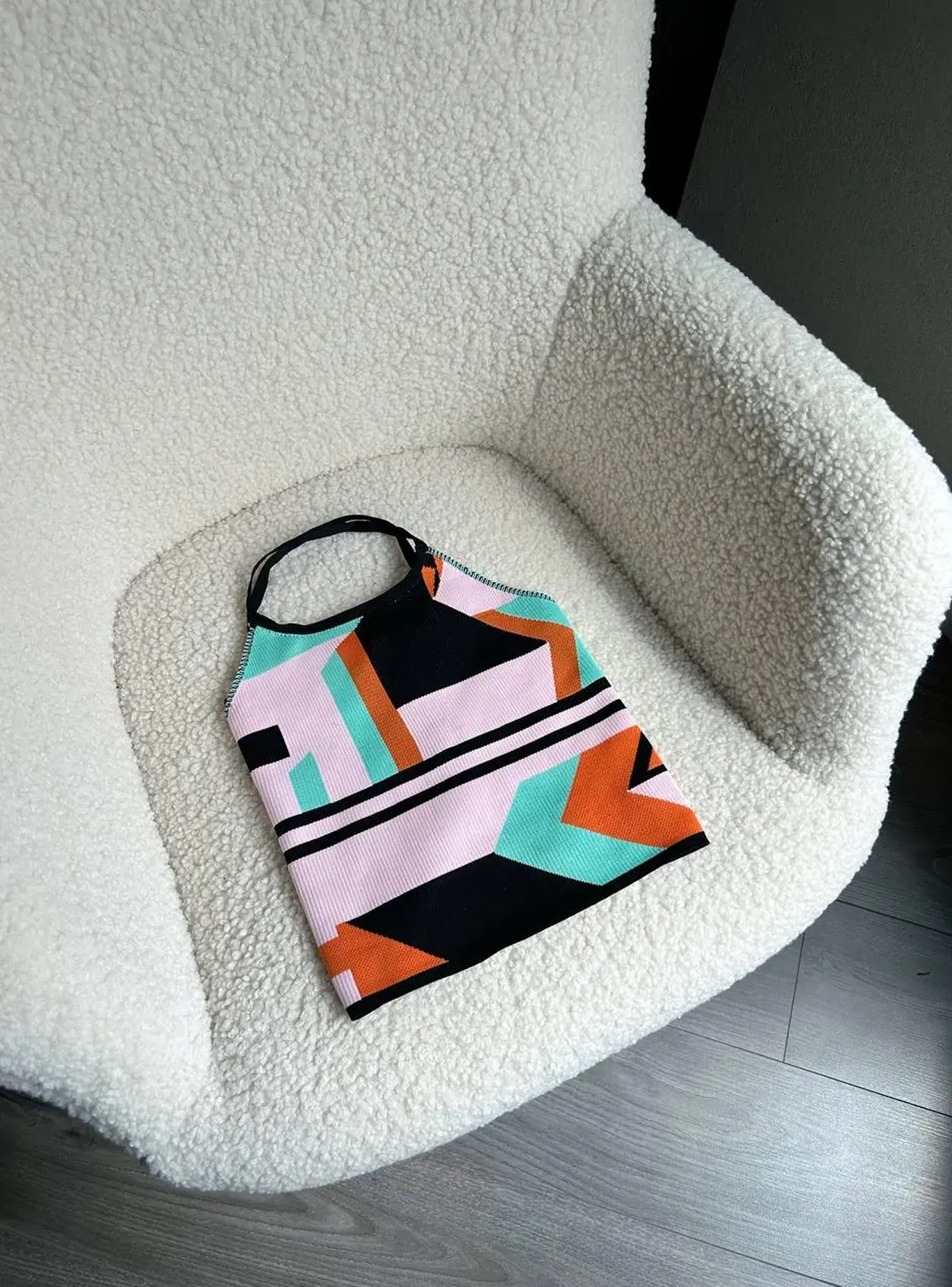 Стильний геометричний принт робить топ акцентним елементом у будь-якому луці — він чудово працює як із джинсами та шортами, так і зі спідницями чи лляними брюками.