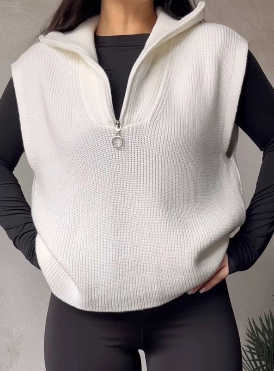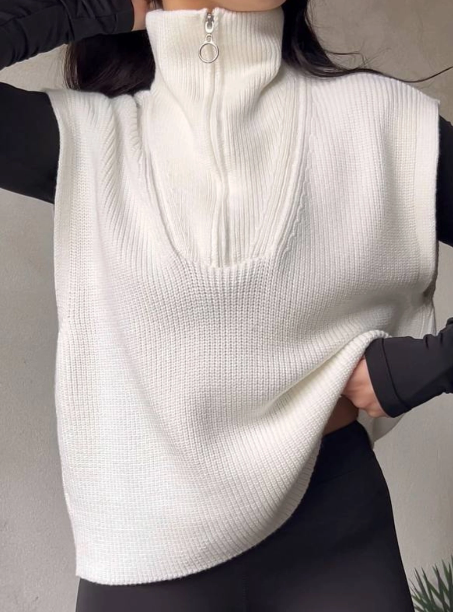 Стильний, комфортний і універсальний — цей жилет стане ідеальним доповненням до базового гардеробу. М’який трикотаж приємно лягає по фігурі, забезпечуючи тепло й комфорт, а комір із блискавкою додає сучасності та дозволяє змінювати настрій образу — від класичного до спортивного.