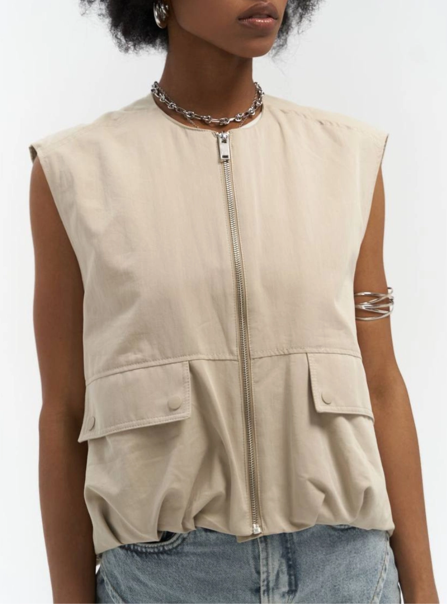 Легка й водночас акцентна модель у стилі мінімалізм — цей жилет створений, щоб додати образу форми й характеру.